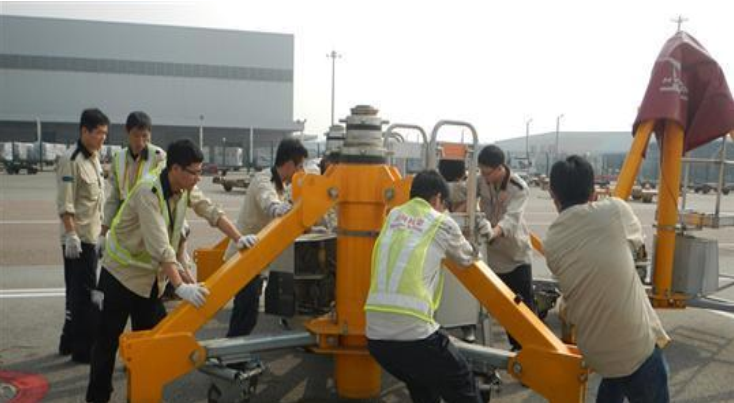 千斤頂是一種常用頂升重量的工具類產(chǎn)品,用到的領(lǐng)域十分廣泛,其主要應(yīng)用于汽車、航空和建筑等領(lǐng)域。伴隨著航空工業(yè)及其產(chǎn)業(yè)的高速發(fā)展和人們生活水平的不斷提高,越來越多的飛機投入航空中。 因此,飛機地面維修用到的設(shè)備也就隨之增加。在飛機制造裝配、大修以及改裝后為了測出飛機的重量和飛機重心等參數(shù)需要對飛機進行稱重實驗。而進行以上工作之前,首先要用飛機千斤頂將飛機頂升到足夠高度,并且要在飛機千斤頂工作的過程中能夠維持長久充足的鎖緊。還有在飛機做起落架收放試驗和機體載荷的校核試驗中,也要用到飛機千斤頂將飛機進行頂升。千斤頂頂升飛機的工作是由兩個機翼千斤頂和一個尾部千斤頂協(xié)同完成,工作狀態(tài)如圖所示。